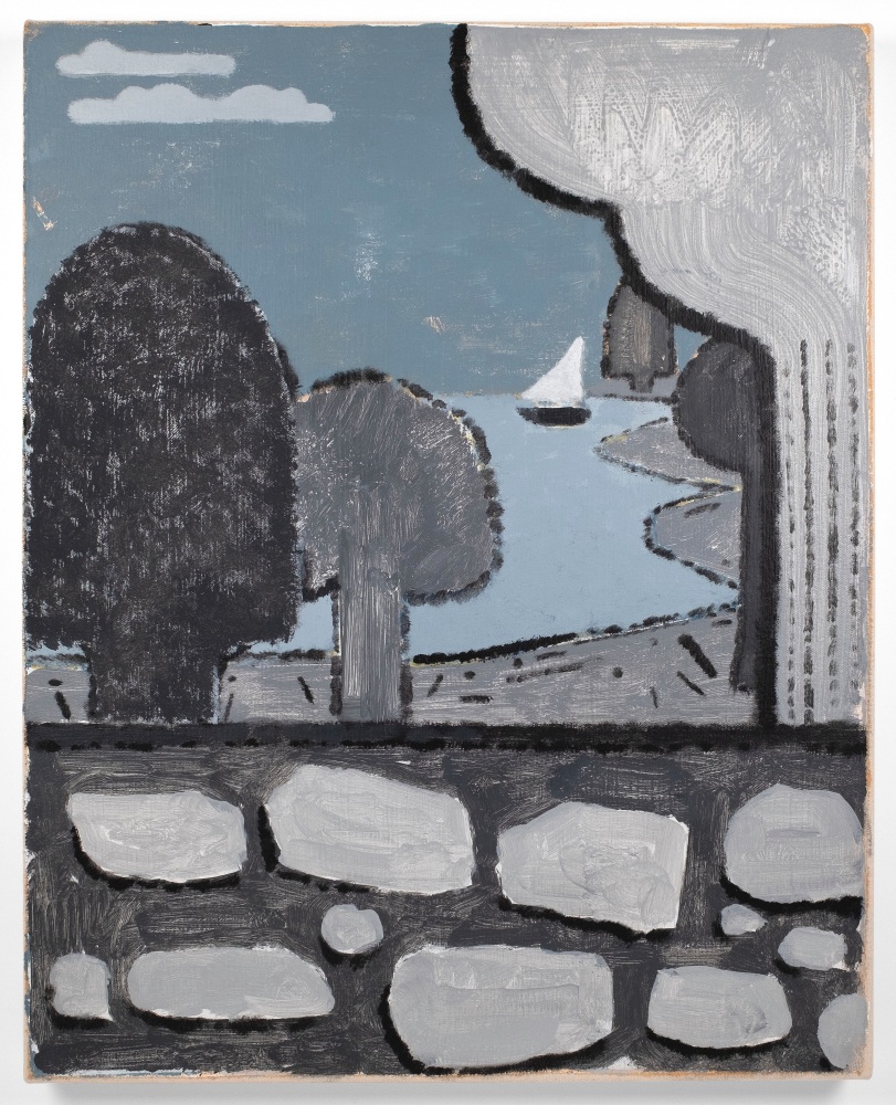 Arts+Leisure is thrilled to announce Home & Garden, an exhibition of recent paintings and drawings by Brian Scott Campbell. Working within the bounds of a tightly defined, yet painterly and expressive visual style, the paintings on display radiate an inner mysticism and profound stillness. Seaside landscapes, country homes, and other bucolic scenes are simplified geometrically, and rendered in a muted palette of predominantly blue and gray hues. Hints of bare canvas appear through Campbell’s thin washes, emphasizing the paintings’ material nature and placing a categorical distance between the viewer and the work as an aesthetic object.