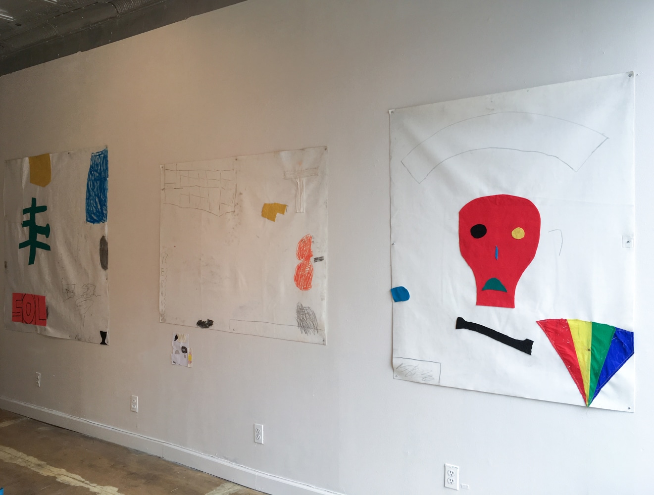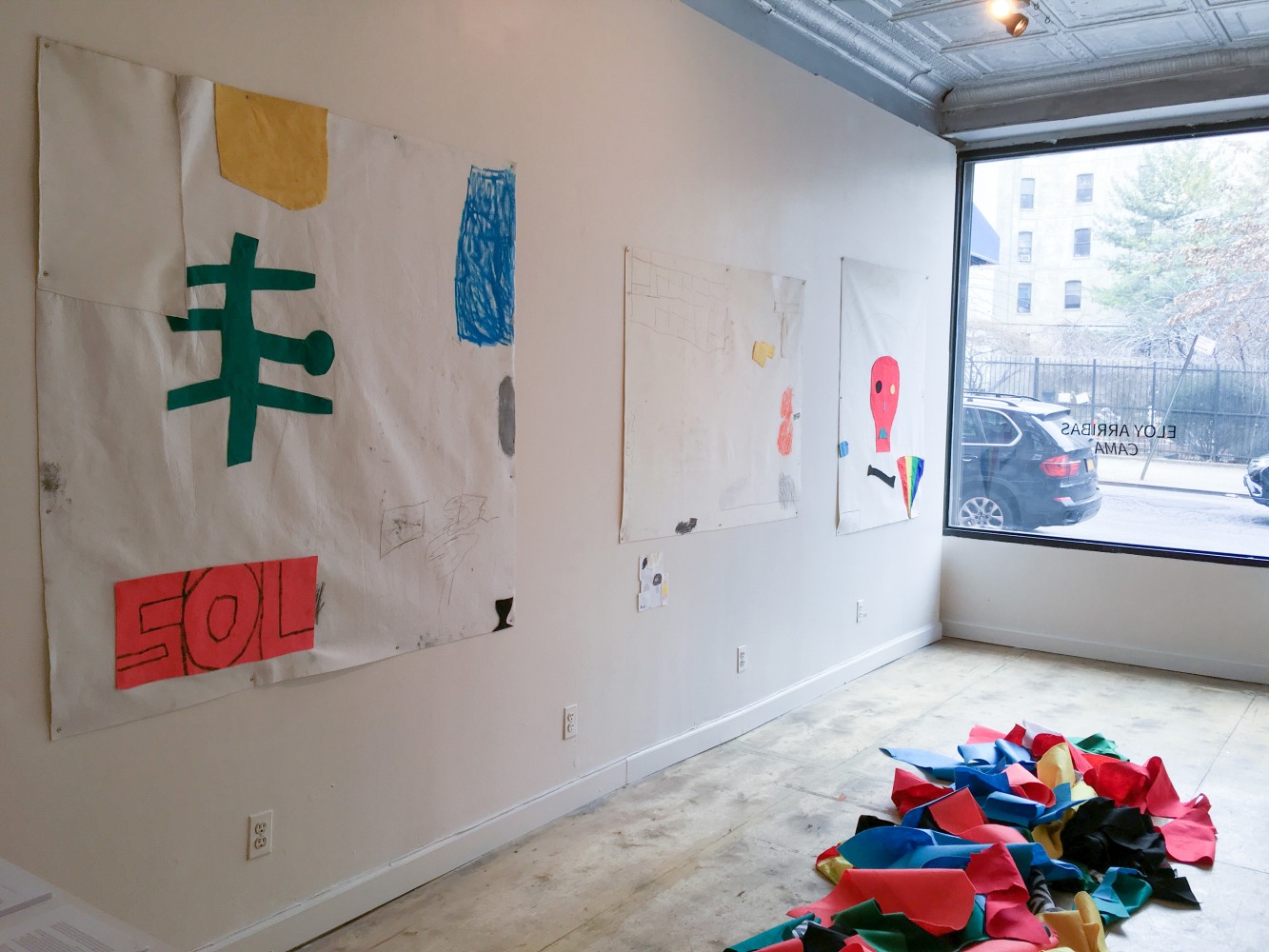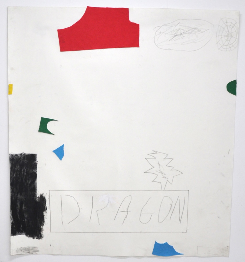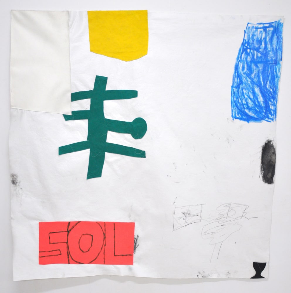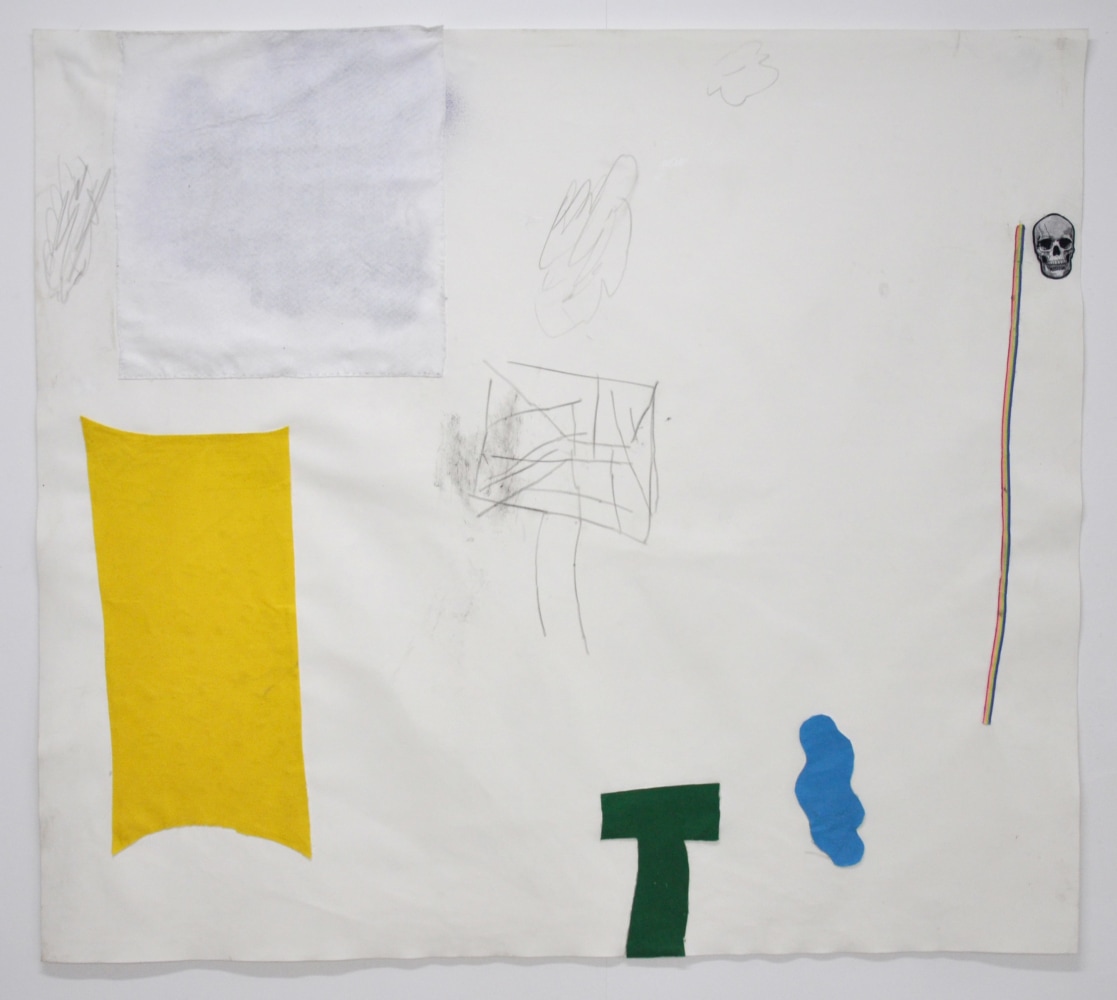 One of the collages bears the word "Dragon," accompanied by patches of free-form drawing and fabric cutouts, while another includes the word "Sol," placed within a similar environment of disconnected forms. Two of the other collages feature skull motifs--one is an almost naive rendering of simple fabric forms, while the other is a found image. As a body of work, CAMA resists rigid interpretation, and the collages instead thrive as reflections of present, momentary experience.