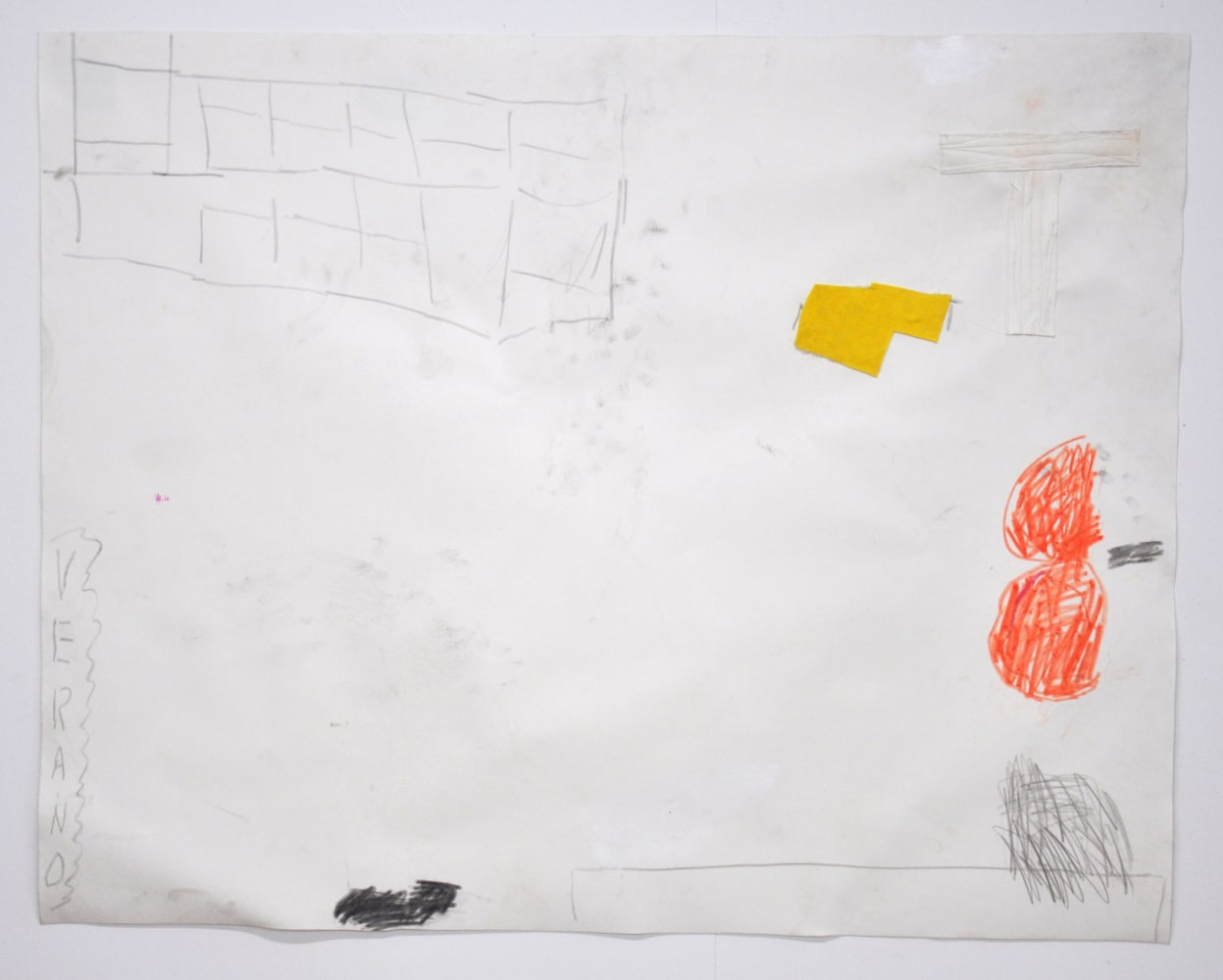 Language plays a central role in Arribas' art, and several of the collages feature words which, divorced from a narrative structure, take on an iconic, sigil-like character. Paired with scrawls, smudges, and other bits of studio detritus, the collages evoke a disjunction between text and image, a sort of non sequitur that reflects both the allusive possibilities of language and its restrictions - for example, the feeling of being "at a loss for words." As postmodern parables of communication and miscommunication, the works grasp for a mode of describing life's ambiguous states, a response, in Arribas' words, to the "lack of nomenclature that we have for the world of sensations, fears and desires."
