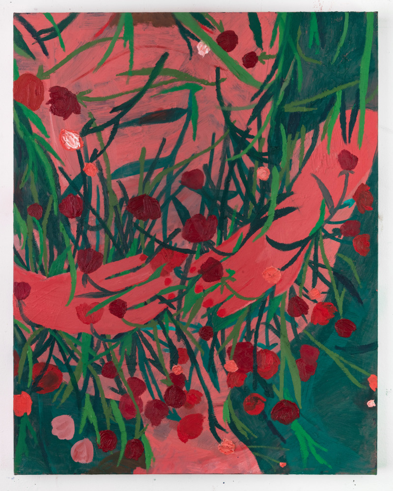Arts+Leisure is thrilled to announce There Is Another Sky, an exhibition of recent paintings by Emilia Olsen. Depicting voluptuous female figures in a range of settings, particularly coils of snakes and verdant layers of plants and flowers, Olsen’s work presents a tour-de-force of expressive technique and painterly flourish. Rendered in viscous swaths of oil paint manipulated with a variety of mediums, her fleshy figures are both organic yet aggressively assertive of their materiality. In Flowers for Myself and Marigolds, Olsen pushes the dynamics of her practice to its limits, crafting sculptural, three-dimensional forms from globs of impasto paint; hovering between painting and sculpture, they confront our understanding of the interplay of simulation and simulacra in the image.
