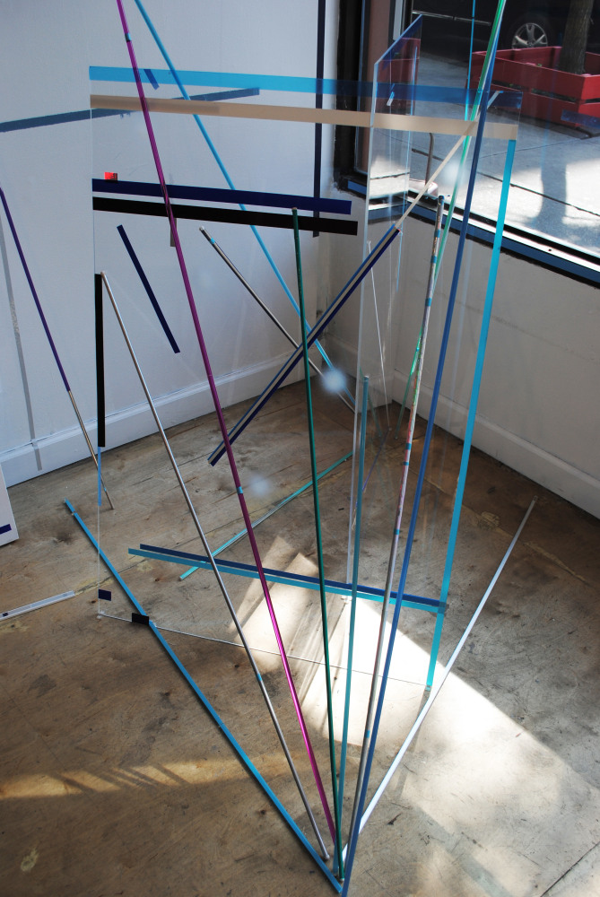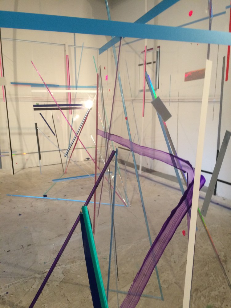 Johnson’s installation at Arts+Leisure will cobble together these foundational elements, pairing them with fresh concepts to optimize the observational power of the viewer. A sense of choreography will be prevalent in Johnson’s construction, but ultimately the experience will dependent upon the viewer’s own interactions and descent into the visual odyssey. Despite its functional and industrial qualities, the linear dimensions, vibrant colors, and refracting lights give the installation an organic and lifelike nature. Components breathe in and out as visitors circulate through the space, viewing the artistic labyrinth of iridescent materials arranged in a kaleidoscopic array of networked materials.
