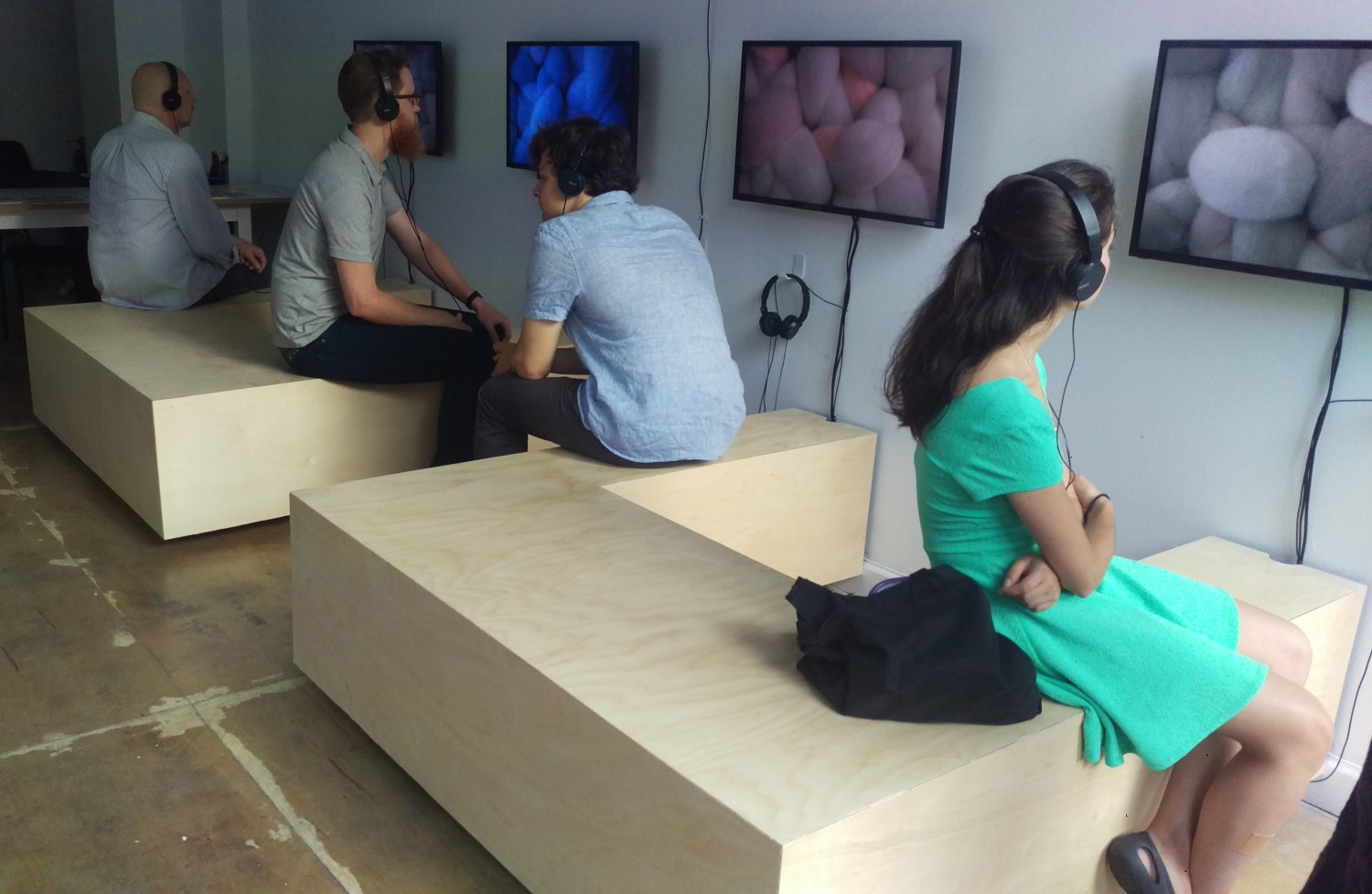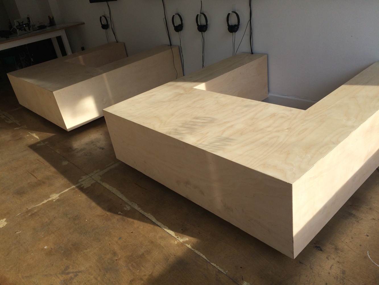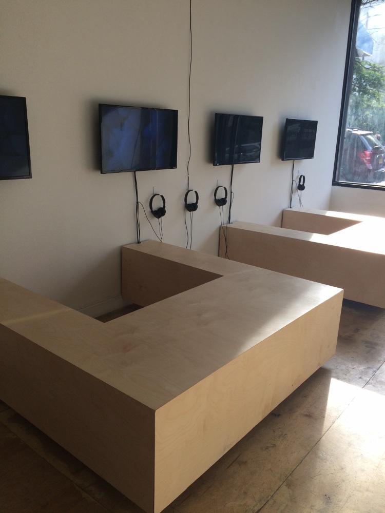 The exhibition installation will feature two U-shaped benches that frame the interactions between the viewers and the work, the viewers and the space, and the viewers with each other. The bench design creates a variety of viewing angles for the work, as well as voids in their centers that signify absence and isolate people’s attention by having them sit together while facing in different directions. The void can be activated, however, depending on how viewers choose to interact with the structure.