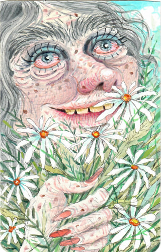 Contributions by Michael Scoggins, Cary Leibowitz, and Rebecca Goyette pivot around the notion of abjection (literally meaning the “state of being cast off”), expressing psychological repression, vulnerability, and raw emotional honesty. Taking the shape of a torn journal entry, Scoggin’s Heart of Gold uses the diaristic format to blur the edges of art and autobiography, while Leibowitz’s crude, profanity-laced watercolors exploit our knee-jerk reactions to explicit sexuality. Goyette also deals with the imaging of sexuality, and her recurring “lobsterwoman” character references aspects of fantasy and fetishism.