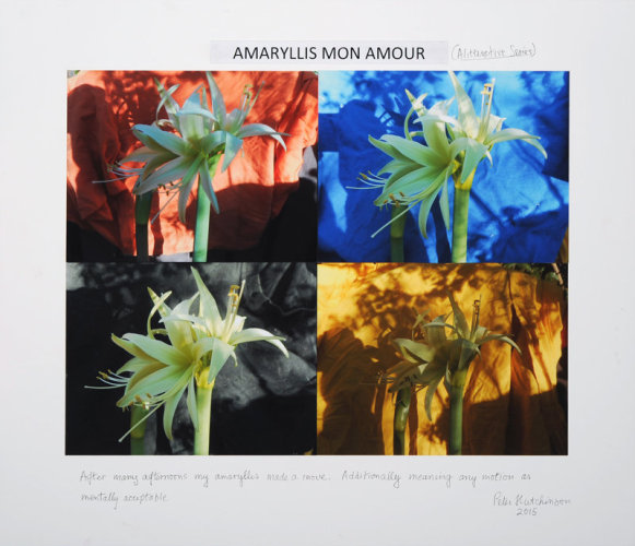 Robin Kang further traces technological avenues in her abstract tapestries, fusing hand embroidery and computer processing to create compositions that recall microchips, motherboards, and other ephemera of the digital age. Radial Star treads the line between the traditions of Southwestern weaving and our contemporary digital paradigm, suggesting a “third path” that is neither Luddite or dismissive of the past. Jamie Powell also prioritizes object and process in her piece Tough Puff, reimagining dress-like material in a framework that gives room for the allusive qualities of their feminine forms to develop. Lastly, Peter Hutchinson gives us Amaryllis Mon Amour, a simple declaration of one man's love affair with nature. At the end of the day, Summer of Love, through all its various approaches and permutations, delivers a heartfelt, reassuring message in the face of challenging times.
