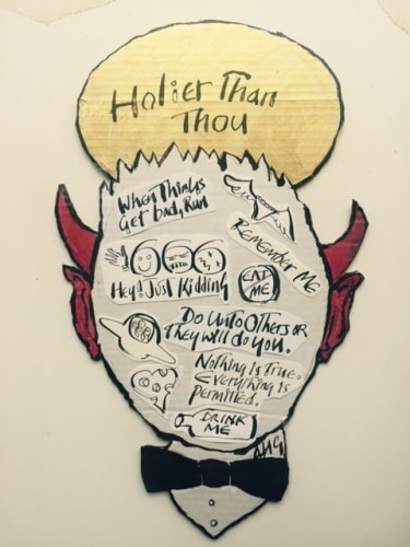 On the other hand, the 50 artists included in Your Bad Self delve deeper. They explore and portray a wide variety of selves, in particular focusing on that other, less accessible self – what Jung refers to as the “shadow self”. Whether through debt or intuition or hardship or segregation from society, artists have the ability to convey a mysterious, hidden, more elusive self – and have been doing so for hundreds of years. Rembrandt, Van Eyck, Van Gogh, Beckmann, Kahlo, Bacon, Samaras, Close and Basquiat are just a few artists who have contributed indelible portraits of themselves to the world, for the enrichment of mankind. Your Bad Self presents 50 contemporary artists’ unique self-portraits, which form a welcome antidote to the proliferation of the “Good Self”: those gleeful, smiling, narcissistic but ultimately vacuous selfies.